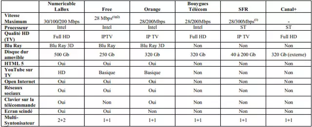HD sur la Freebox Révolution mais chacun jugera les informations données dans ce tableau