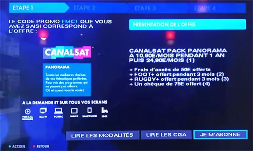 Pour bénéficier de cette offre, il suffit de vous rendre dans l’univers Canalsat de votre Freebox, puis de taper le code promo : FMC1