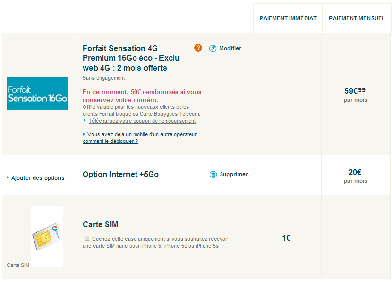 Il faudra également compter 10 euros de plus et un engagement de 24 mois pour un forfait avec terminal subventionné.