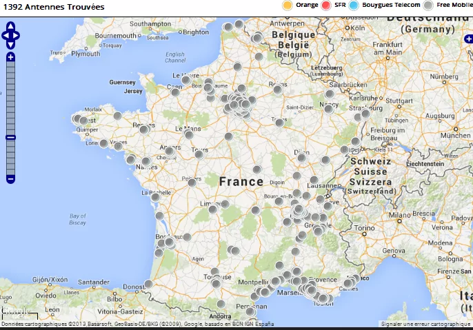 Après les chiffres des déploiements mobiles publiés par l’ANFR en début de mois, c’est le site antennesmobiles.fr qui vient de mettre à jour ses cartes, notamment celles concernant les sites autorisés à émettre en 4G. Pour Free Mobile, on peut en dénombrer 1392 sites autorisés à émettre, répartis sur l’ensemble du territoire métropolitain.