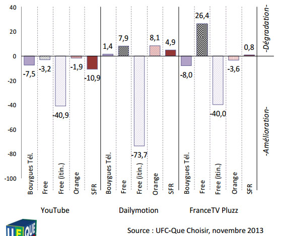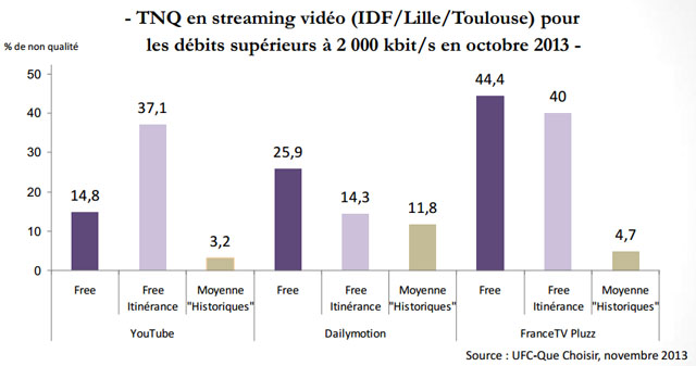 L’UFC Que Choisir note l’existence d’un problème spécifique à Dailymotion puisque les taux de non qualité des 4 opérateurs de réseau sont en augmentation.