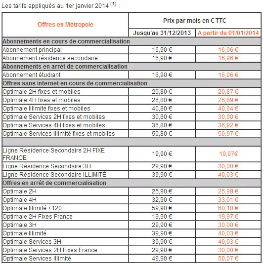 Les autres opérateurs commencent également à indiquer leurs intentions en la matière. C’est ainsi qu’Orange annonce différentes hausses de tarifs que vous pouvez découvrir en détail dans le tableau ci-dessous :