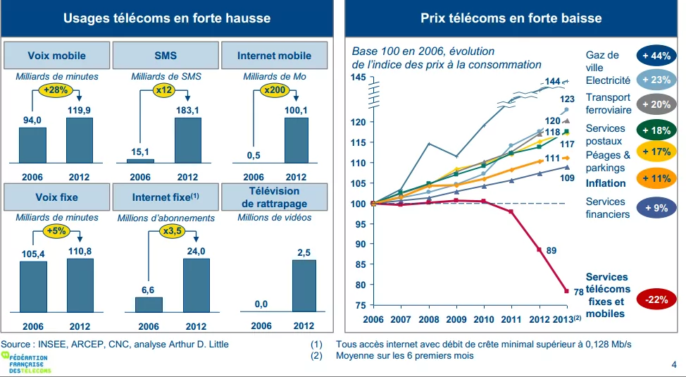 Selon cette étude, alors que la consommation de services dans les télécoms augmente, que les investissements des opérateurs se sont maintenus, les prix ont fortement chuté.