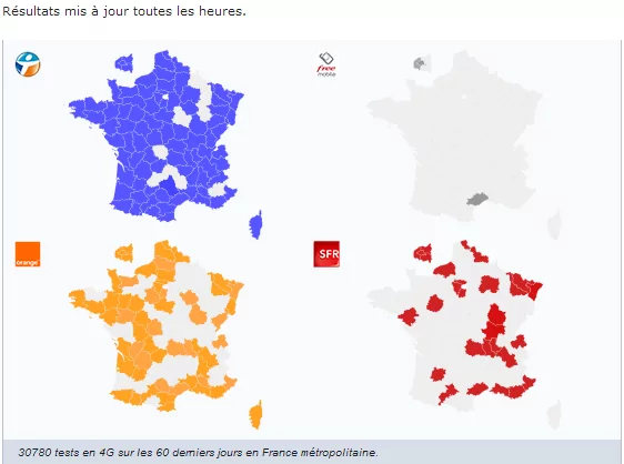 Enfin dans les Hauts-de-Seine, seuls de 5 à 20 tests pour Free Mobile ont été relevés par 4G Monitor. Dans ce département d’Ile de France, Free se classe dernier en débit descendant avec 15 Mbits de moyenne et premier en débit montant avec 17,4 Mbits de moyenne. Orange domine également le classement dans ce département avec 46,2 Mbits descendants, 27,5 Mbits pour Bouygues et 23,5 Mbits pour SFR.