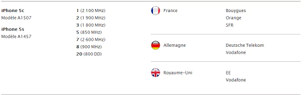 En septembre 2013, au lancement des iPhone 5C et 5S, Apple avait publié la liste des bandes de fréquence et des opérateurs "compatibles LTE" : SFR, Orange, Bouygues, mais l’opérateur Free, qui n’avait pas encore lancé commercialement sa 4G, n’en faisait pas partie. Bien que les téléphones soient compatibles avec la bande 2600 MHz, Free doit désormais faire une demande de certification de sa bande de fréquences à Apple.