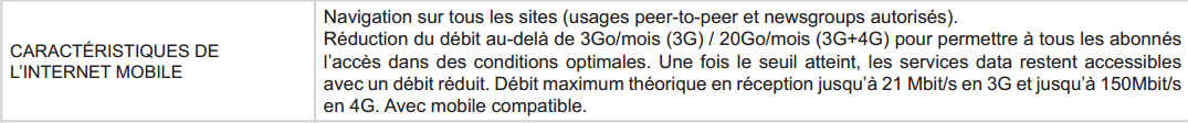 On y retrouve bien entendu les nouvelles fonctionnalités de la 4G, les conditions de couvertures, un débit théorique maximum de 150 Mbits. Cependant, l’opérateur a également modifié les caractéristiques de sa 3G. En effet, si jusqu’à présent le débit théorique maximum de la 3G de Free était de 14 Mbits, il passe désormais à 21 Mbits ce qui correspond à de la 3G++ aussi appelée HSPA+.