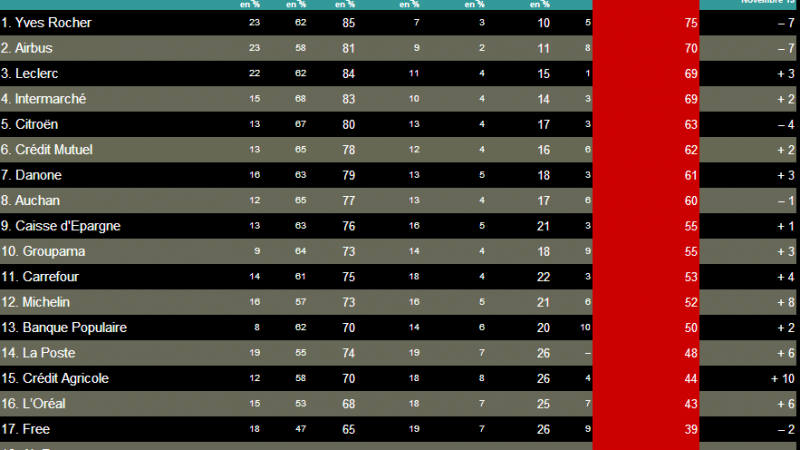 L’objet du sondage : déterminer si la personne interrogée, "en fonction de ce que vous avez entendu dire d’elles ces derniers mois", a "une très bonne image", "plutôt bonne image", "plutôt mauvaise image" ou une "très mauvaise image" de l’entreprise concernée.