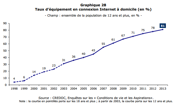 Concernant les offres fixes, ils sont désormais 81 % à disposer d’Internet à domicile (+3 points).