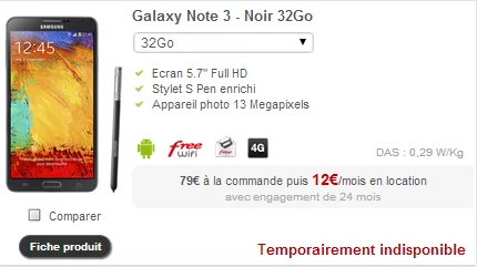 • Galaxy Note 3 : Débit max : 150 Mbit/ s, 4G disponible depuis aujourd’hui via mise à jour