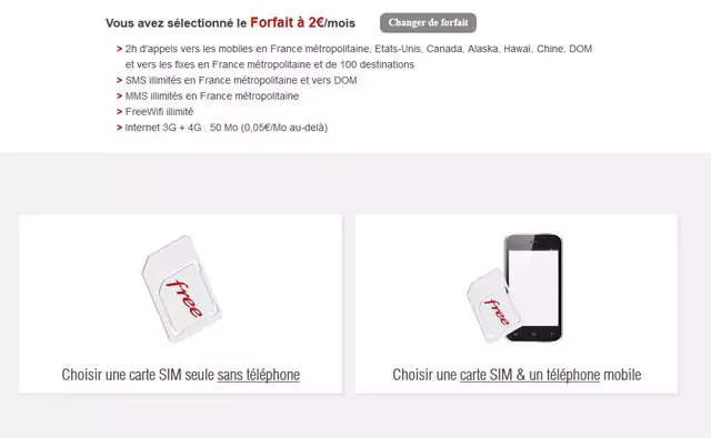Depuis le lancement des téléphones en location, Free Mobile propose maintenant à l’abonné de choisir s’il souhaite une carte SIM seule ou avec un mobile. Si l’abonné ne souhaite que la carte SIM, la procédure reste identique à ce qui existait auparavant. Si l’abonné choisit de prendre un mobile avec sa carte SIM, la boutique des téléphones s’affiche alors.