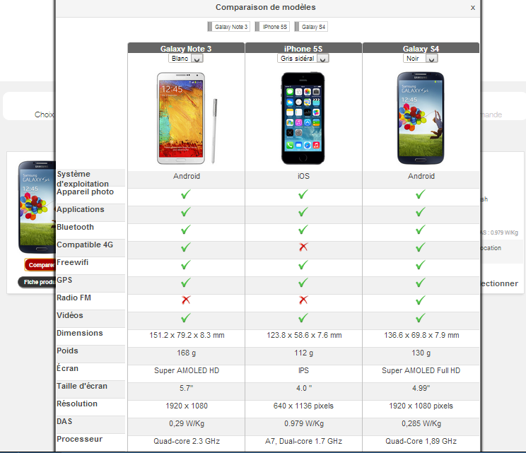 Choisissez la version de téléphone que vous souhaitez, puis cliquez sur "sélectionner." Vous pouvez également les comparer les options des terminaux proposés en cochant la case puis en cliquant sur le mot "comparer".