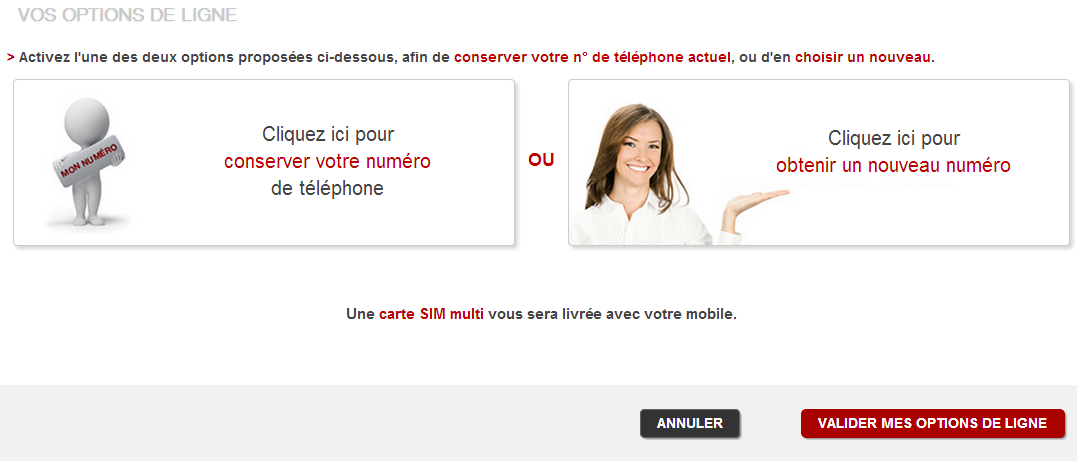 Une fois cette étape validée, comme pour tout abonnement mobile, vous avez le choix entre "conserver votre numéro" et "prendre un nouveau numéro."