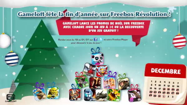 En effet, à partir du 18 décembre et jusqu’au 1er janvier 2014, Gameloft proposera, chaque jour aux abonnés Freebox de découvrir un jeu gratuitement ou un jeu à 1 € seulement. Bien entendu, nous ne manquerons pas de vous tenir informés sur les différents jeux en promotion (ou en découverte) durant cette opération spéciale.
