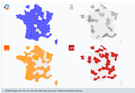 Concernant les débits moyens strictement en 4G, Free accroche quelques départements à son tableau de chasse, le Gard, l’Hérault, la Loire Atlantique et les Alpes Maritimes, Finistère, Maine et Loire et Ile et Vilaine sont désormais les fiefs du trublion des télécoms y affichant les meilleurs débits moyens quel que soit l’opérateur.