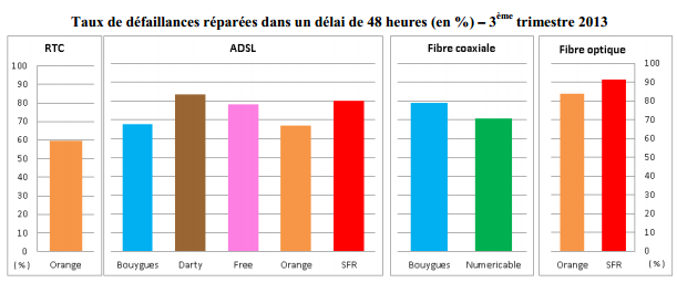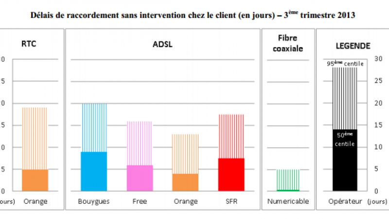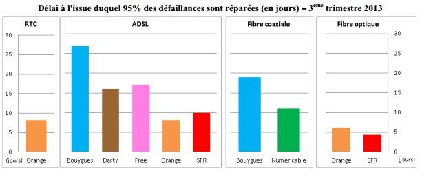 L’ARCEP publie ce jour les données concernant la qualité de service fixe des opérateurs pour le 3 ème trimestre de 2013. Elles concernent les délais de raccordement, le taux de pannes et leurs délais de résolution.