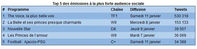 Il a ainsi examiné les performances des émissions du PAF et a compté 1 611 261 tweets liés aux émissions diffusées sur les principales chaines, dont 656 125 pour uniquement le samedi 11 janvier.