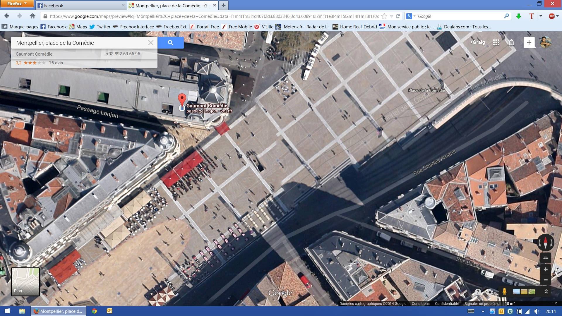 Comme beaucoup l’avaient trouvé, il s’agit de la ville de Montpellier. Il fallait en effet reconnaître la place de la Comédie vue du ciel. Voici ce que donne le plan élargi de la photo sur Google Maps (merci à Gregory)