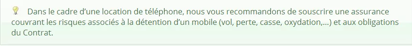 Casse, perte, vol, résiliation anticipée, des frais peuvent être infligés aux abonnés en cas de mauvaise utilisation du terminal.