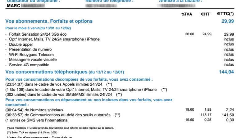 « En ne modifiant aucunement mes habitudes de gros consommateur de mobile, je suis passé de 15,99 € chez Free à 174 € chez Bouygues !! Pour sensiblement les mêmes communications ! Avec ce seul mois de facturation Bouygues, j’aurais payé plus d’ 1 an d’abonnement chez Free !» s’insurge-t-il. Et de nous préciser que ce sera sa première et sa dernière facture chez Bouygues Télécom puisque Marc est revenu chez Free Mobile.