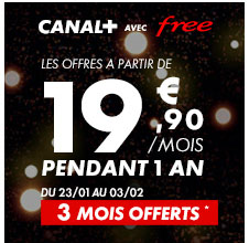 Canal+ vient de lancer une promo flash qui ne dure que 10 jours, disponible, entre autre, via la Freebox. Et elle est plus intéressante que la promotion de la période précédente puisque cette fois-ci les 3 premiers mois (2 mois + le mois en cours) sont offerts, que ce soit pour Canal+ ou Canalsat. Cette offre est valable uniquement du 23 janvier au 3 février