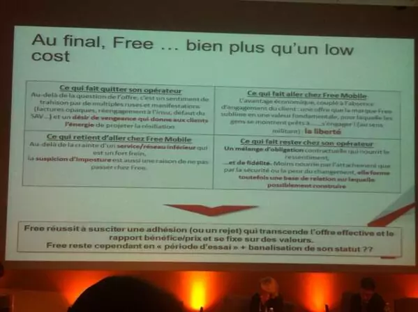 En somme, la JNE2014 et son étude de cas sur les opérateurs semblent révéler que Free a provoqué le changement des comportements des clients vis-à-vis de leur opérateur, "une occasion de nouer un contact avec leur opérateur d’origine" accompagnée "d’une attente forte", provoquant la déception des clients "lorsque le relationnel de la marque n’a pas été à la hauteur."