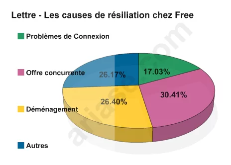 Ces données étant exprimées en pourcentage et non en quantité de résiliations, elles doivent néanmoins être considérées avec prudence, Ariase ayant analysé un échantillon de courrier de résiliation sans les dénombrer. Aucune donnée ne permet d’évaluer si les résiliations chez les opérateurs sont à la hausse ou à la baisse.