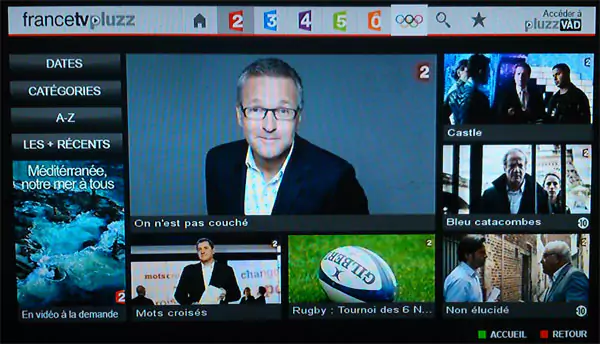 Depuis Freebox TV (via la Freebox Révolution), se rendre sur une des chaînes de France Télévision, puis cliquez sur la touche « info » (jaune). Appuyez ensuite sur « OK » vous accéderez au menu ci-dessous.