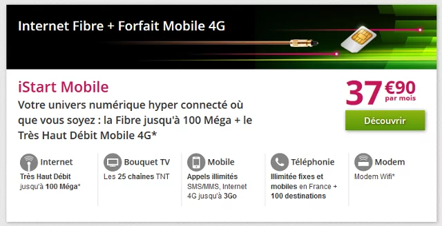 En comparaison, Free propose un accès Internet Très Haut Débit jusqu’1 Gbit/s en fibre optique, jusqu’100 Mbit/s en VDSL2 et jusqu’au 22 Mbit/s en ADSL2+, un accès à 459 chaînes dont 212 inclus dans l’option TV, les appels en illimités vers les fixes de 108 destinations et vers les mobiles en France + un forfait mobile 4G incluant les appels illimités vers les mobiles en France métropolitaine, Etats-Unis, Canada, Alaska, Hawaï, Chine, DOM (Guadeloupe, Guyane française, Martinique, Mayotte et La Réunion) et vers les fixes en France métropolitaine et de 100 destinations, ainsi que les SMS illimités en France métropolitaine et vers DOM et les MMS illimités en France métropolitaine + 20Go de data en 3G/4G (si téléphone compatible) + du roaming vers l’Europe et les DOM… etc… Le tout pour 53.96€/mois (Freebox Révolution avec l’option TV à 37,97€ + forfait mobile Free avec avantage abonné à 15,99€).