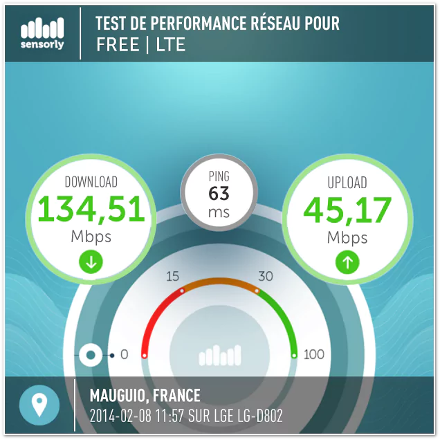 134,51 Mbps à Mauguio sur le réseau 4G de Free Mobile. Qui dit mieux ?