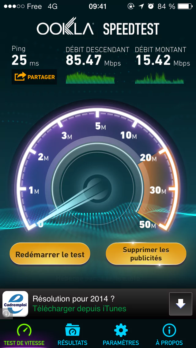 Aujourd’hui, beaucoup d’applications sur iOS ou Android, permettent de calculer la vitesse de débit en 4G. Vous êtes nombreux à nous envoyer les captures d’écran de vos tests. Afin de les faire partager avec les autres abonnés, nous les publierons donc dans les éditions régionales d’Univers Freebox. Voici donc le record d’un test de débit réalisé par un Freenaute à Nancy.