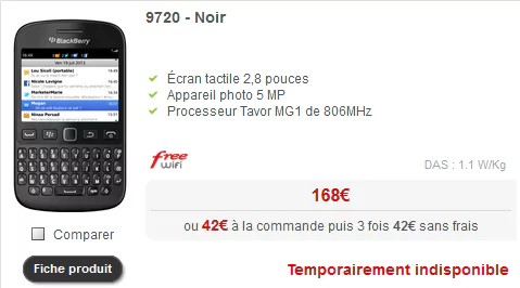 Le Blackberry 9720 disparaît donc de la plateforme, la marque ne possède plus aucun modèle vendu pour le moment par la plateforme de Free.