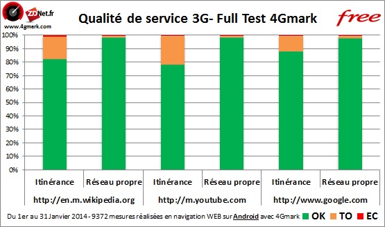 Malgré ces bons résultats, Free Mobile reste l’opérateur qui affiche la plus grande proportion de connexions Web qui se retrouvent en Echec ou Hors Delais. Selon les tests de Zdnet et 4G Monitor c’est en itinérance sur le réseau Orange que se produisent le plus souvent ces échecs.
