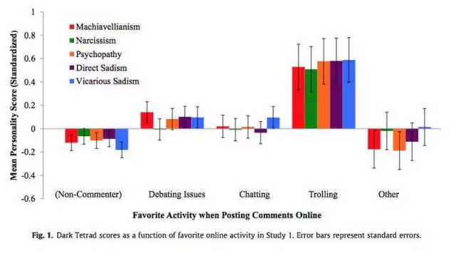 Il ressort de cette étude qu’ils sont machiavéliques, psychopathes, narcissiques et sadiques. Ils agissent ainsi sur la Toile comme des « agents du chaos » et se comportent « de manière déceptive, destructive ou disruptive dans le cadre social d’Internet sans raisons intéressées apparentes ». L’étude précise que « si un malheureux internaute tombe dans le piège, les trolls poursuivent leur œuvre juste pour le plaisir ».