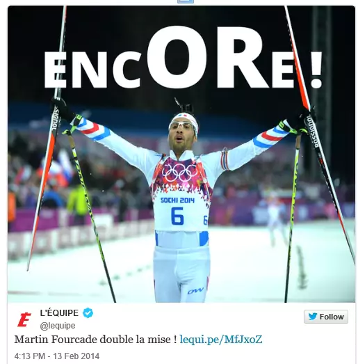 Durant la semaine écoulée, c’est Martin Fourcade, la star française des JO d’hiver qui a été la personnalité la plus mentionnée sur Twitter. Le double médaillé d’or totalise 6 382 micro-messages.