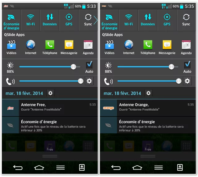 Autre fonctionnalité très pratique, depuis la version 3.0 (qui est en cours de déploiement), le développeur a ajouté un petit icône (en forme de maison), lorsque la connexion est établie avec la Femtocell de la Freebox Révolution.
