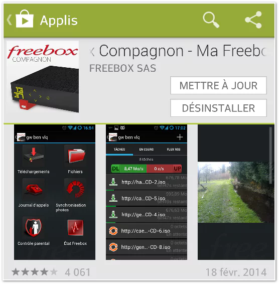 Pour mettre à jour votre Freebox Compagnon, rendez-vous sur Google Play (la version varie selon les terminaux).