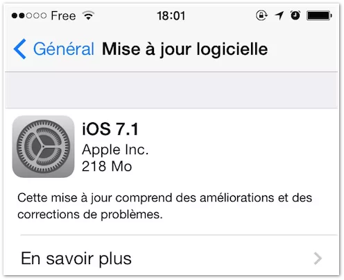 NB : la mise à jour iOS 7.1 est également disponible pour les iPad 2, 3 et 4, ainsi que les iPod Touch 5.