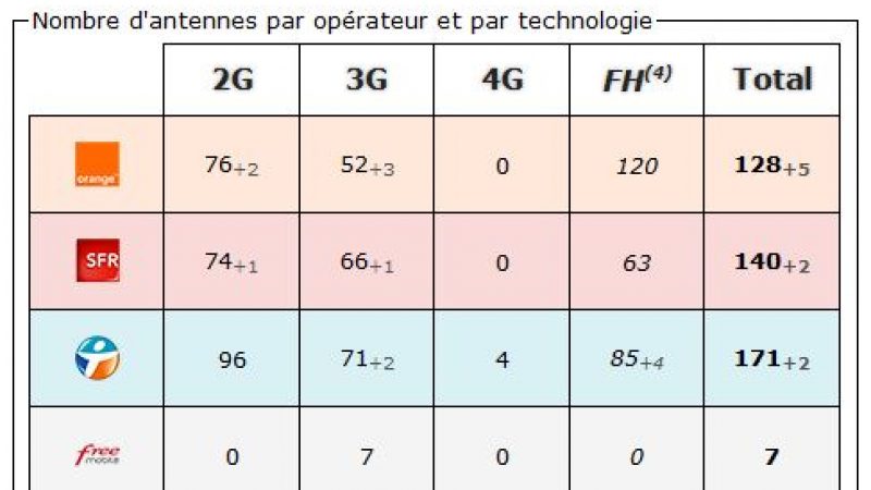 (4) FH (faisceau hertzien) : Système de transmission entre les antennes relais. N’est jamais directement capté par un mobile. (chiffre non comptabilisé dans le total des antennes).