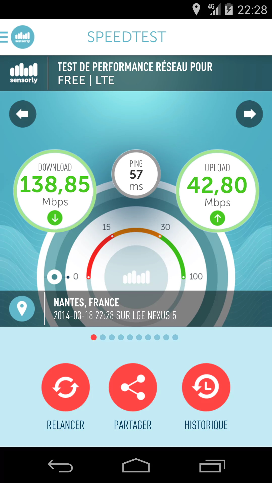 Vous êtes nombreux à nous envoyer les captures d’écran de vos tests de débit 4G. Afin de les faire partager avec les autres abonnés, nous les publierons donc dans les éditions régionales d’Univers Freebox. Voici donc le record d’un test de débit réalisé par un Freenaute à Nantes. Record battu puisque nous avions enregistré un débit de 121.9Mbps dans la même ville il y a quelque temps.