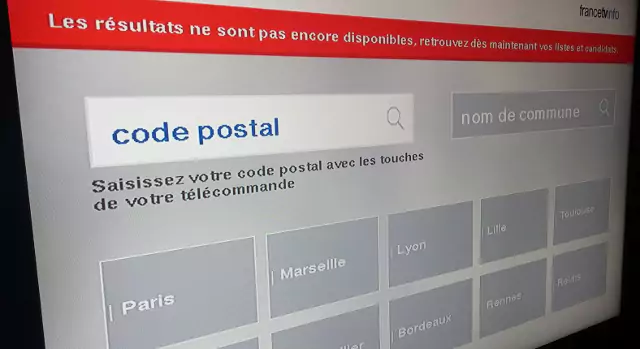 En tapant très simplement le code postal de votre choix sur la télécommande, vous pourrez consulter les résultats sur votre téléviseur depuis les chaînes France 2, France 3, France 5 et France Ô (touche Info, puis dans l’onglet Replay, cliquez sur Municipales 2014). Le service est également disponible depuis Freebox Replay, dans la rubrique « France TV info – Municipales 2014 / Résultats ».