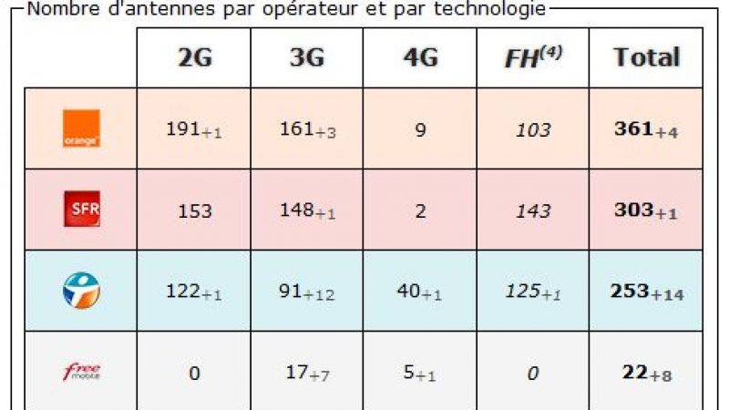 4) FH (faisceau hertzien) : Système de transmission entre les antennes relais. N’est jamais directement capté par un mobile. (chiffre non comptabilisé dans le total des antennes).