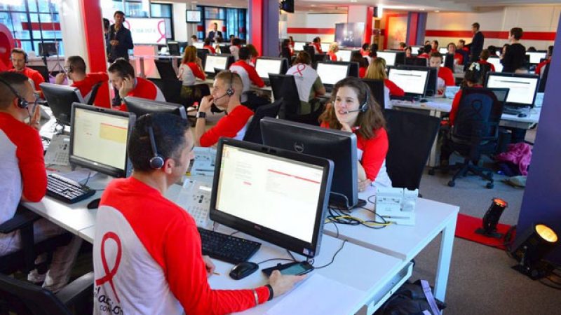 Depuis 7 ans, Free met à disposition du Sidaction un de ses plateaux d’appels, et pour la deuxième année consécutive, l’opérateur accueillait les duplexs diffusés sur France 2. Plusieurs animateurs de France télévisions se sont ainsi succédés au cours de la journée. Durant la soirée de samedi, on a pu voir par exemple Bruno Guillon, animateur sur France Télévisions et Fun Radio, qui animait le duplex depuis le centre d’appels du Sidaction. Des animateurs qui n’hésitaient pas à mettre l’ambiance au milieu des bénévoles même lorsque les caméras ne tournaient pas.