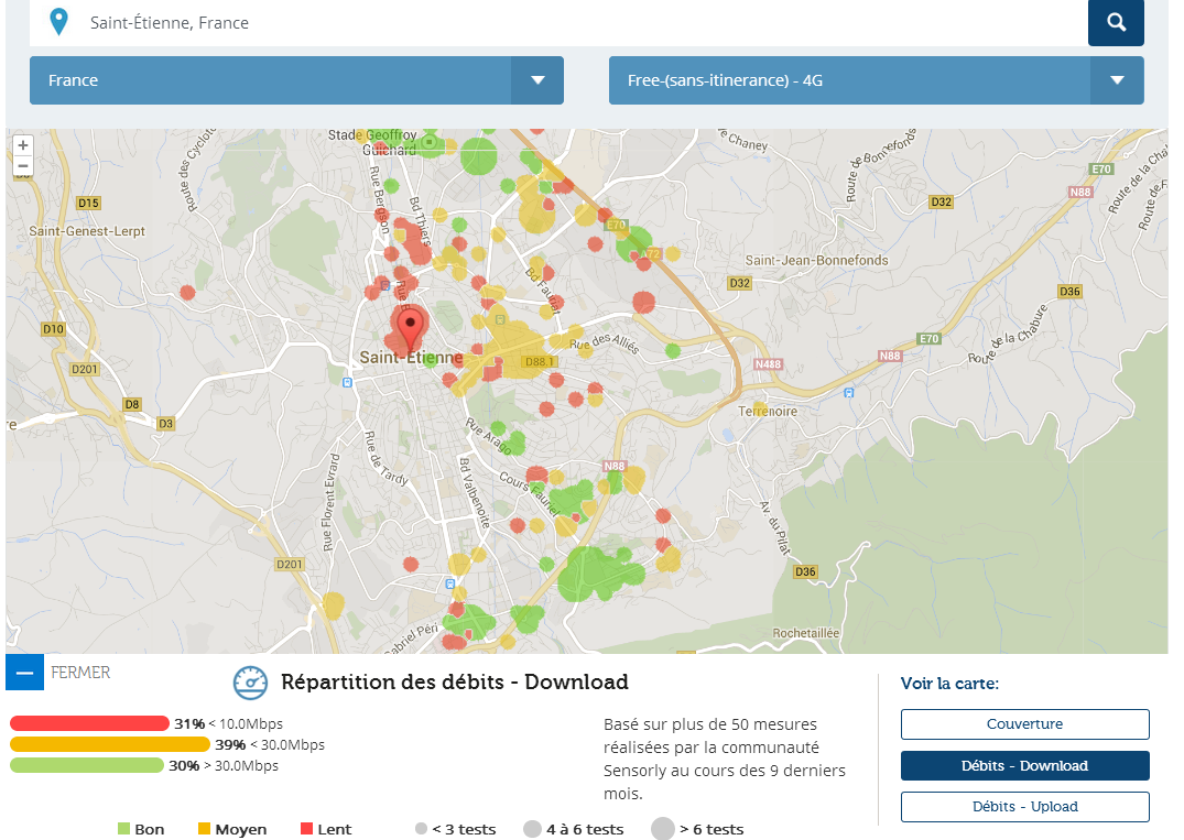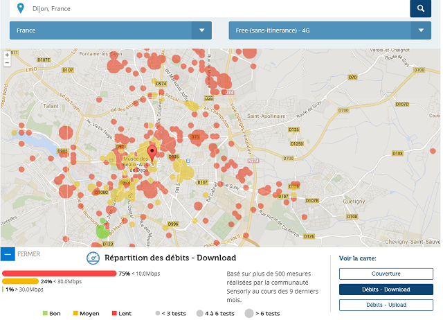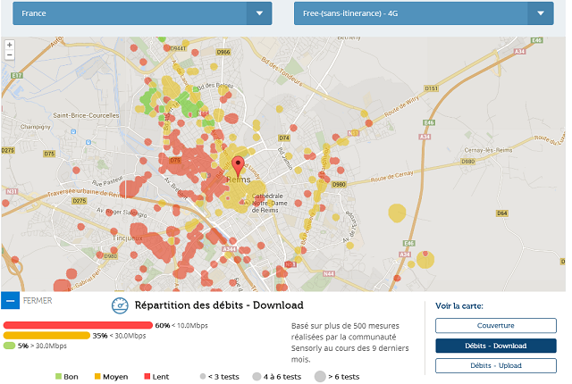 Les débits 4G Free Mobile de 10 nouvelles villes : de Rennes à Dijon, en passant par Le Havre et Nimes