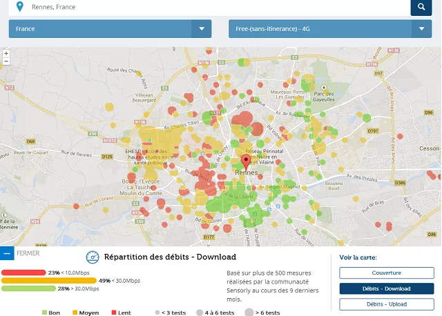 Il fait bon être abonné Free Mobile quand on habite Le Havre. Plus de 3/4 des connexions, mesurés par les abonnés sur l’application Sensorly, sont repartis avec un débit supérieur à 30 Mbits. Avec seulement 3 % des connexions inférieures à 10 Mbits, la ville du Havre fait partie des villes disposant des meilleurs débits Free Mobile. Certains quartiers de la ville normande mériteraient néanmoins d’être testés de manière plus approfondie.