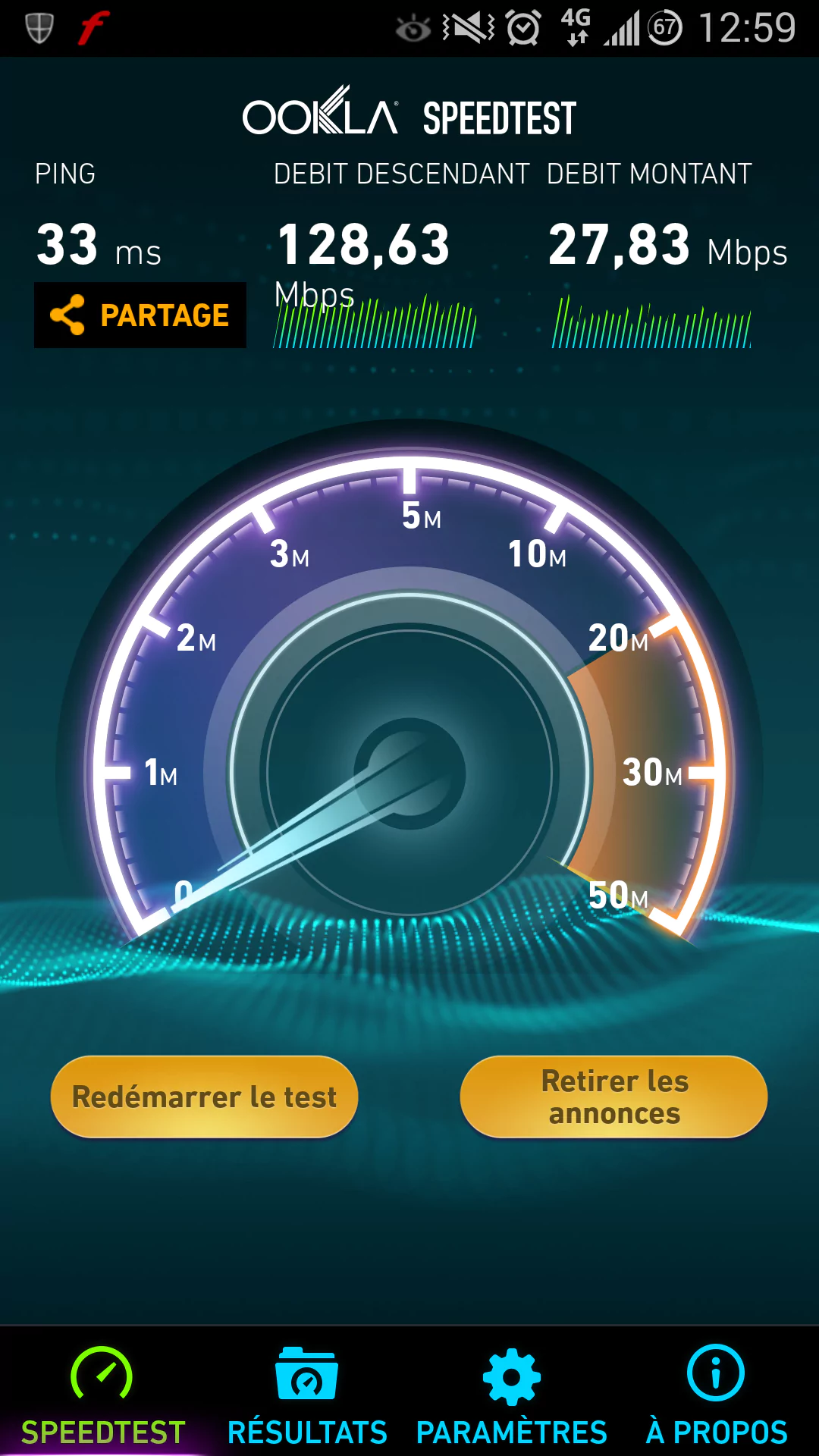 Vous êtes nombreux à nous envoyer les captures d’écran de vos tests de débit 4G. Afin de les faire partager avec les autres abonnés, nous les publierons donc dans les éditions régionales d’Univers Freebox. Voici donc le record d’un test de débit réalisé par un Freenaute à Marseille. Record battu puisque le dernier débit enregistré dans cette ville était de 96.8Mbps.