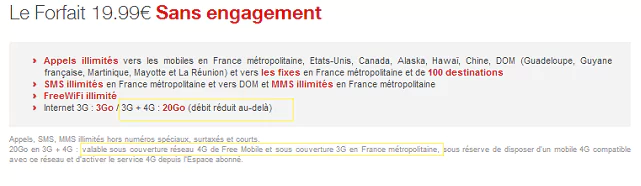 Extrait de l’offre de Free Mobile en détail :