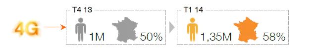En 2014, Orange prévoit d’amplifier le déploiement de son réseau de quatrième génération. L’opérateur historique couvre notamment 98,7% de la population en 3G/3G+ et 77% de la population en H+.