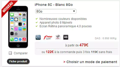 La nouvelle version de l’iPhone 5c avec 8Go disponible chez Free Mobile