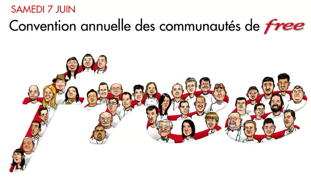 Pour conclure et pour ne rien vous cacher, l’image a été réalisée par le dessinateur Franck Raynal, et représente les membres des différentes communautés de Free (vos serviteurs d’Univers Freebox, de C-Alice et bien d’autres). C’est Angélique Berge, Directrice de la relation avec les abonnés, qui nous a envoyé cette très belle invitation (vous pouvez cliquer sur l’image pour l’agrandir ou ici afin de découvrir les caricatures de plus près).