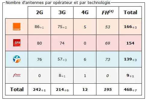 Vous pouvez ainsi découvrir le nombre d’antennes actives selon l’opérateur et la technologie utilisée. Les chiffres devancés d’un (+) dévoilent le nombre d’antennes disponibles qui ne sont pas encore activées. Ces données sont issues des chiffres officiels de l’ANFR.